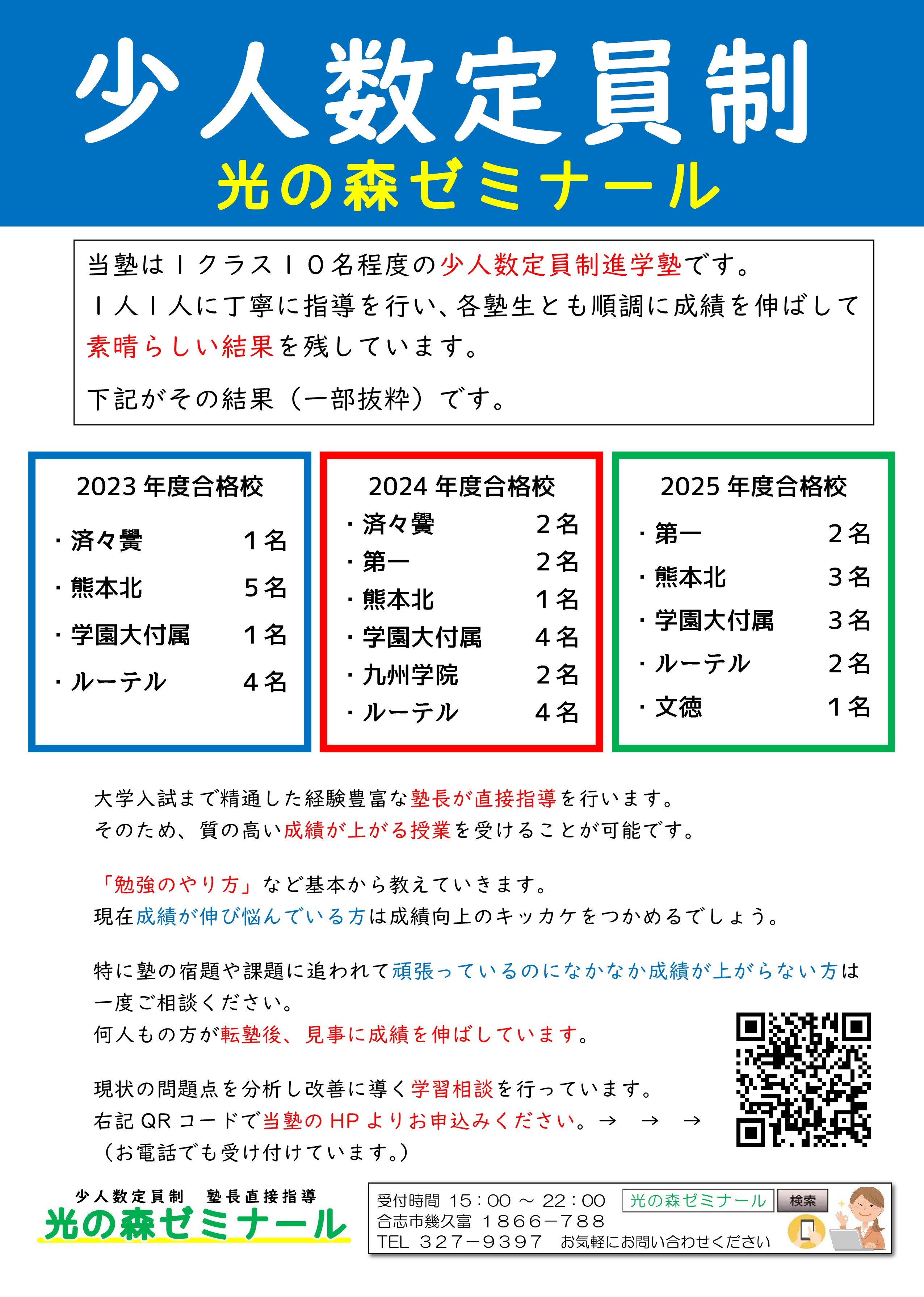 当塾のように少人数制の塾は、年度により生徒数やレベルにバラつきがあります。